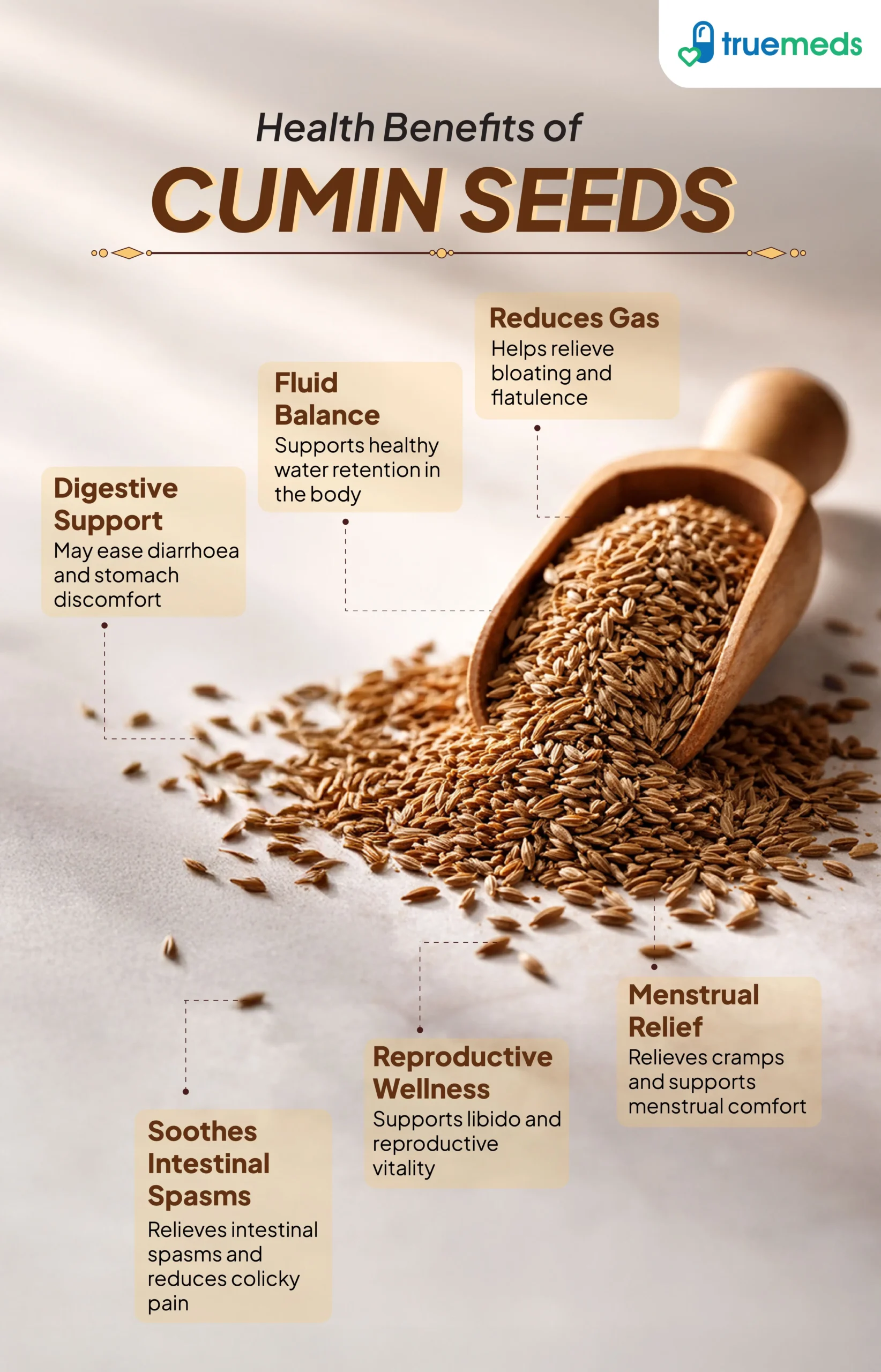 भारतीय रसोई में जीरा का उपयोग दाल, सब्जी, तड़का और मसालों में किया जाता है जिससे खाने का स्वाद कई गुना बढ़ जाता है। यह पाचन में भी मदद करता है और स्वास्थ्य के लिए लाभदायक होता है।