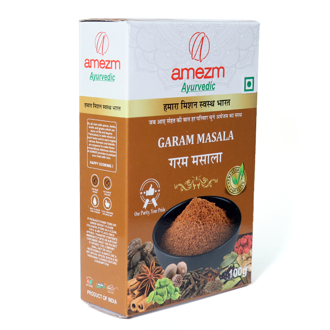 The Ayurvedic spices used in this garam masala are known for supporting digestion and overall wellness, making food both flavorful and easy to digest. Prepared using modern hygienic processes, Amezm Garam Masala retains the natural essence and potency of traditional spices.